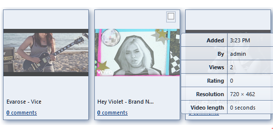 | Description | After adding some Youtube videos into a gallery, I notice that the most recent entry is missing the select option in the space above the thumbnail. Also noticed the space above the thumbnail shows in Guest view though the select option doesn't. When hovering the thumbnail, given the restrictive title length on the gallery page, it would be nice to see the title in this overlay along with the other details. |