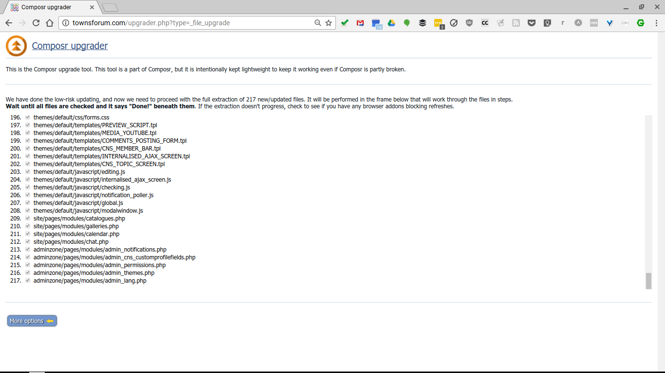 All 316 files installed, and got the check mark. However, even after waiting for a considerable time (5-6 minutes), the "Done" never appeared. I pressed 'continue' any ways, and everything appears to be working fine. You may want to see if you can replicate this, as obviously I can not now. |