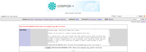 "APPLICATION WARNING #300: String "non-assigned_bug_title" not found."