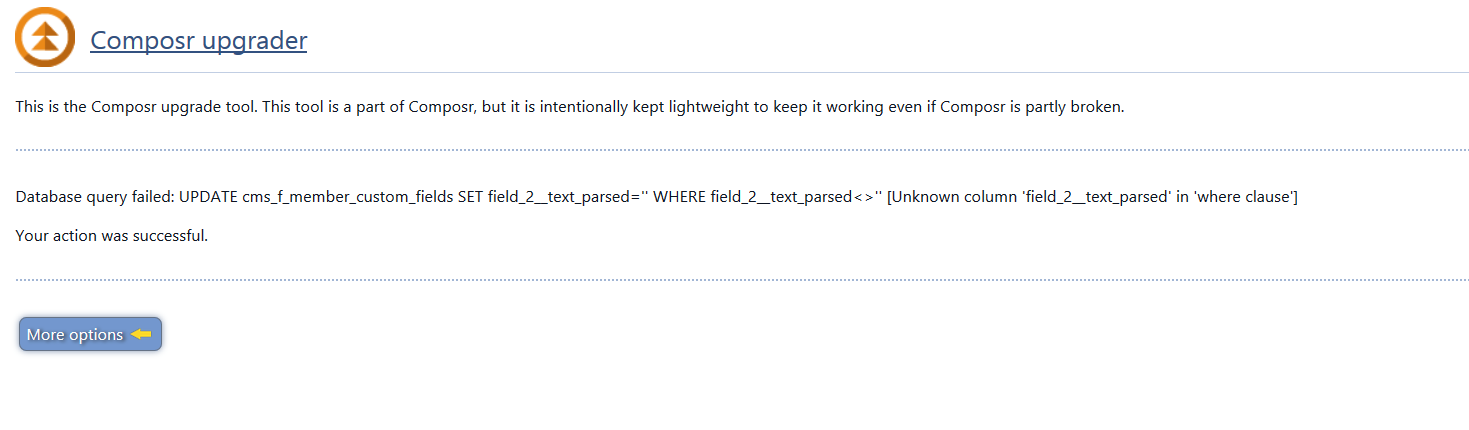 Tempcode -> Unfortunately a query has failed [UPDATE mcaj_f_member_custom_fields SET field_2__text_parsed='' WHERE field_2__text_parsed<>''] [<strong>Unknown column 'field_2__text_parsed' in 'where clause'</strong>]