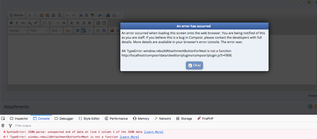 | Title | Editor fails badly if simplified attachments UI option disabled |