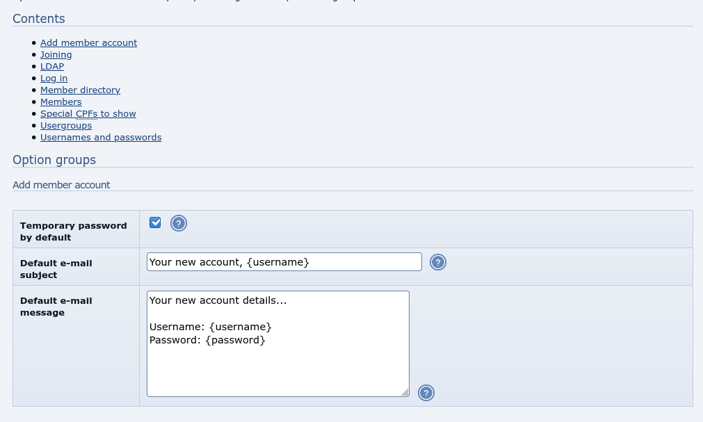 Support variable binding, and binding to their new password (as {password}). Have new config options for specifying the defaults for those subject and body fields, and for the checkbox that specifies whether to make the user's password temporary. |