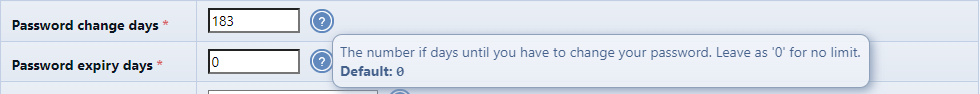 | Description | The english pop-up description for both "Password change days" and "Password expiry days" have a typo in them.