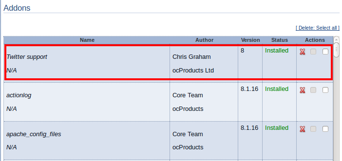 Note this is the non-bundled Twitter support addon, not the Twitterfeed addon.