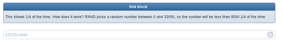 This shows 1/4 of the time. How does it work? RAND picks a random number between 0 and 32000, so the number will be less than 8000 1/4 of the time.
