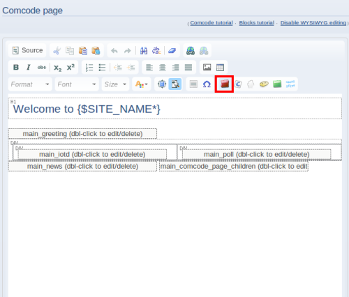 We can add blocks to a Comcode page by clicking “Edit this page” link in the bottom of the page.