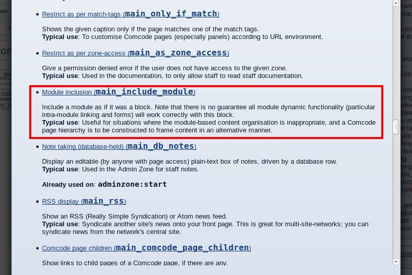 It will display a list of blocks in the Composr, which is also the “Block construction assistant”. We can select the block we need to add in the current page.