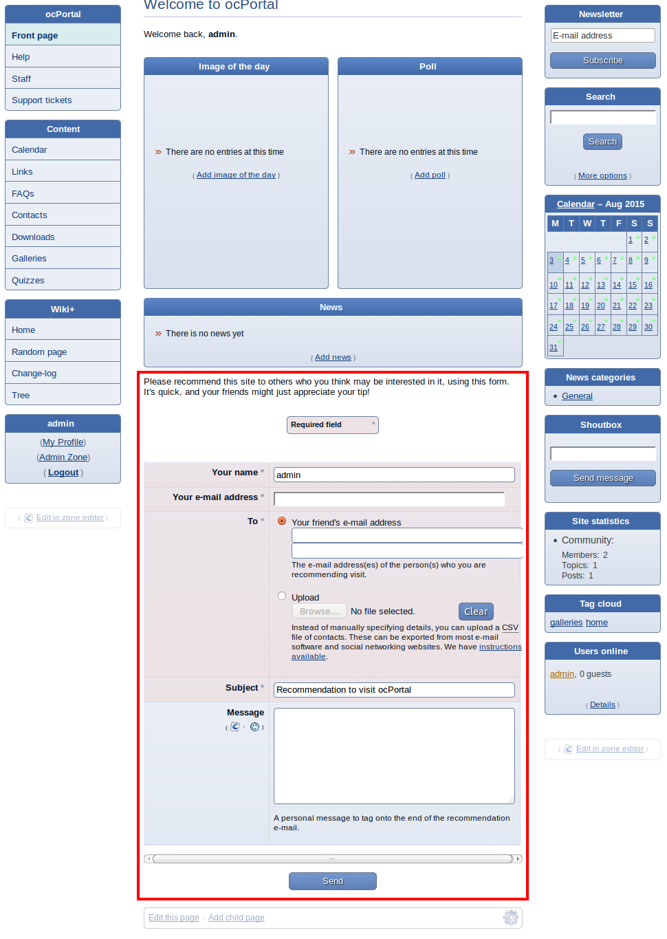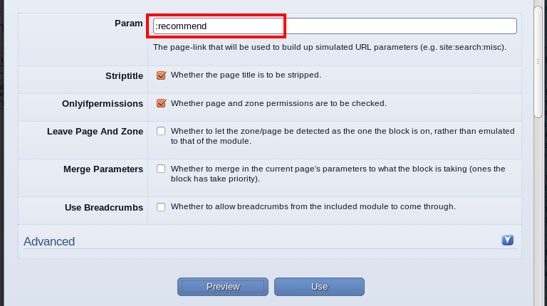 The user must include the name of the module to be added in the “Param” field. The module, “:recommend” is added in the given example. “:recommend” is a block to recommend Composr to your friends. You can see the preview before saving changes by pressing the “Preview” button. Press the “Use” button to use it in the built-in editor, from which we selected the “Add block” button. The new block will be displayed in the editor as shown in the image.