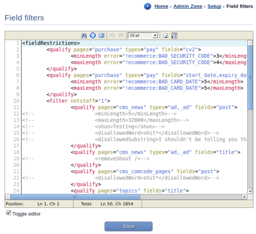 Composr provides a powerful feature for filtering the user input data given through various forms in Composr. The admin users can apply this feature, using an xml config file for defining the filters. This filter system can influence the form results by filtering its input values. The config file is 'fields.xml' which is located in data_custom/fields.xml, this file defines all the restrictions for the website which goes in to the fields.