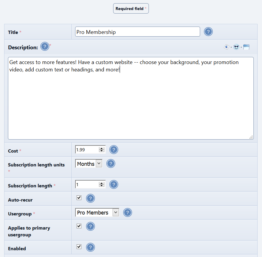 <input type="hidden" value="Subscription for jmbronson (Pro Membership)" name="item_name" />