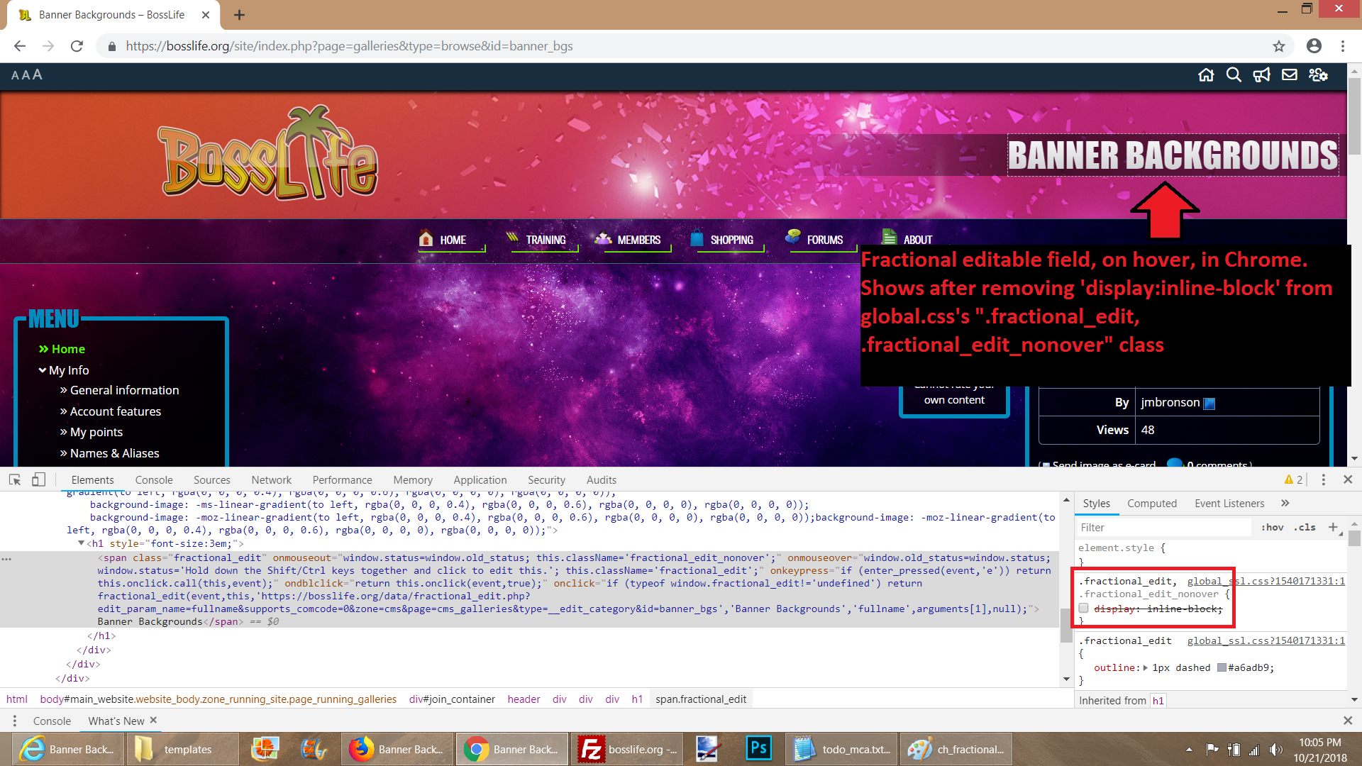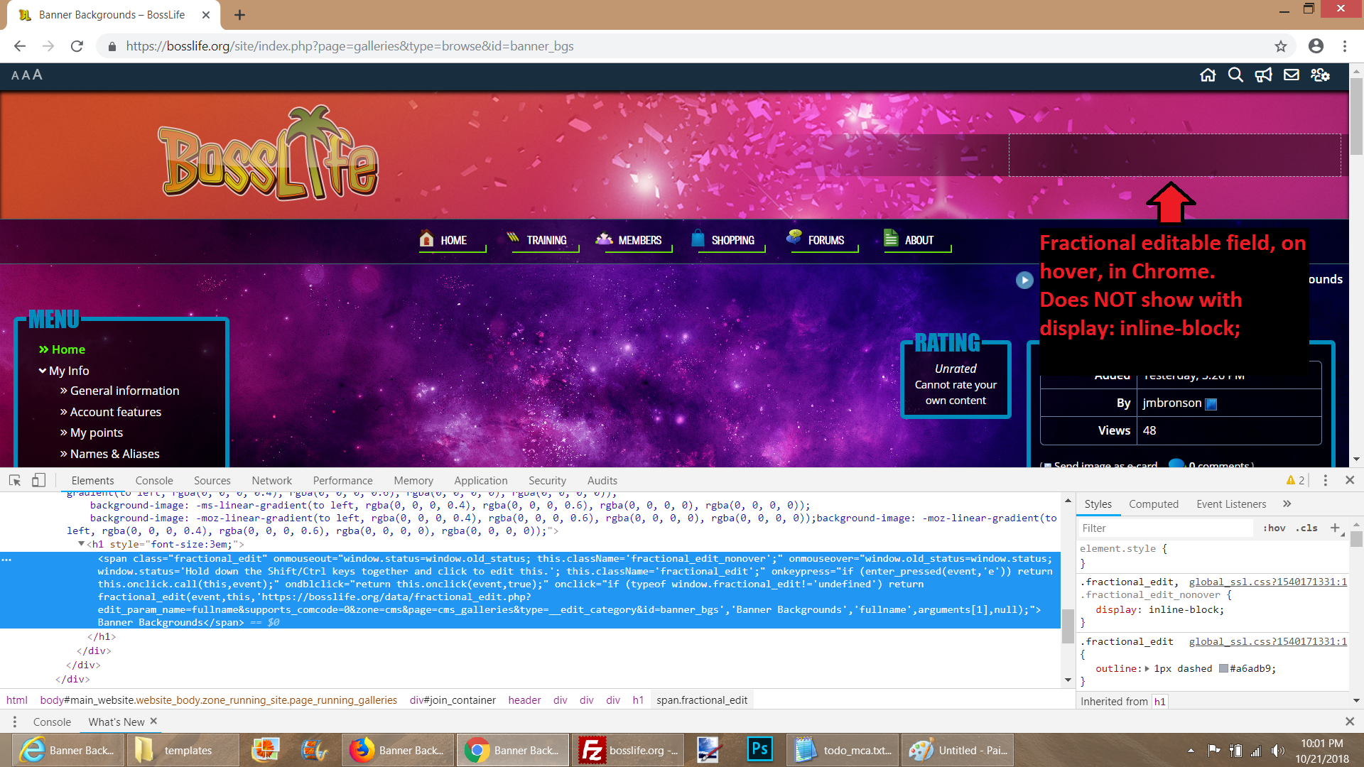 The only way I was able to show the fractional editable field and keep it showing (even after hovering) was to completely remove the "display:inline-block" value from global.css