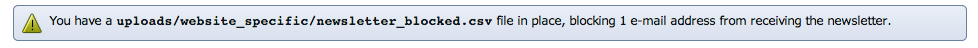 "You have a uploads/website_specific/newsletter_blocked.csv file in place, blocking 4,880 e-mail addresses from receiving the newsletter."